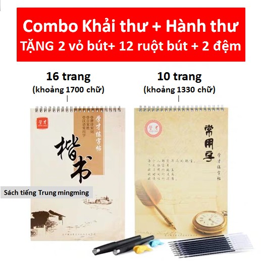 Set vở luyện viết Tiếng Trung Khải thư +Hành thư + 2 vỏ bút + 12 ruột bút + 2 đệm